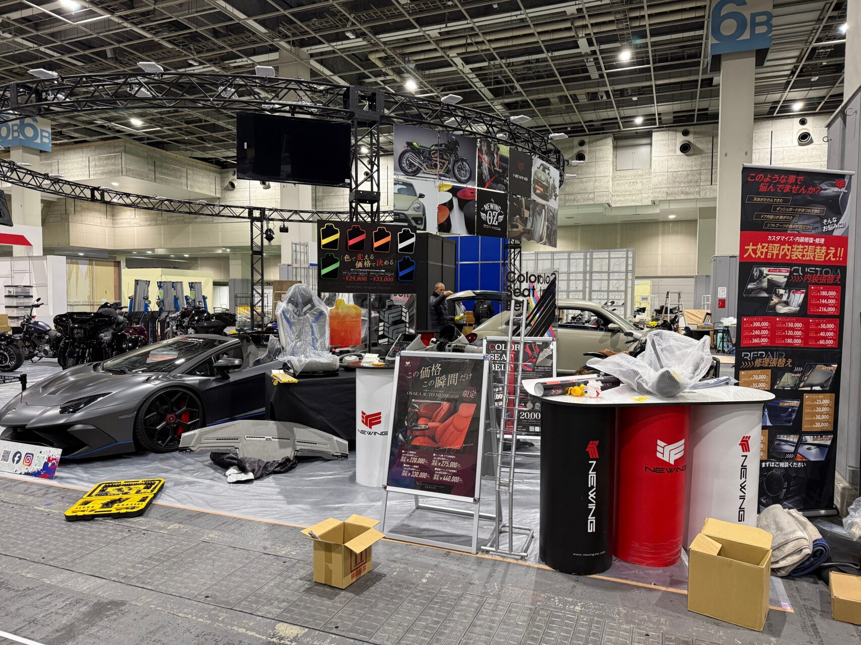 どうも!NEWINGの宮先です。 明日から大阪オートメッセ2026が開幕となります。 誠に勝手ながら店舗は3日間臨時休業となります。 昨日は僕も現地へ設営にいき、担当しておりますアヴェンタドールSVロードスターの作業! […] -