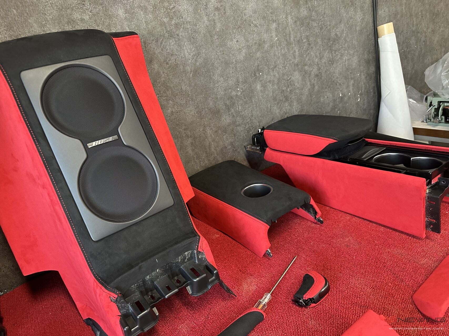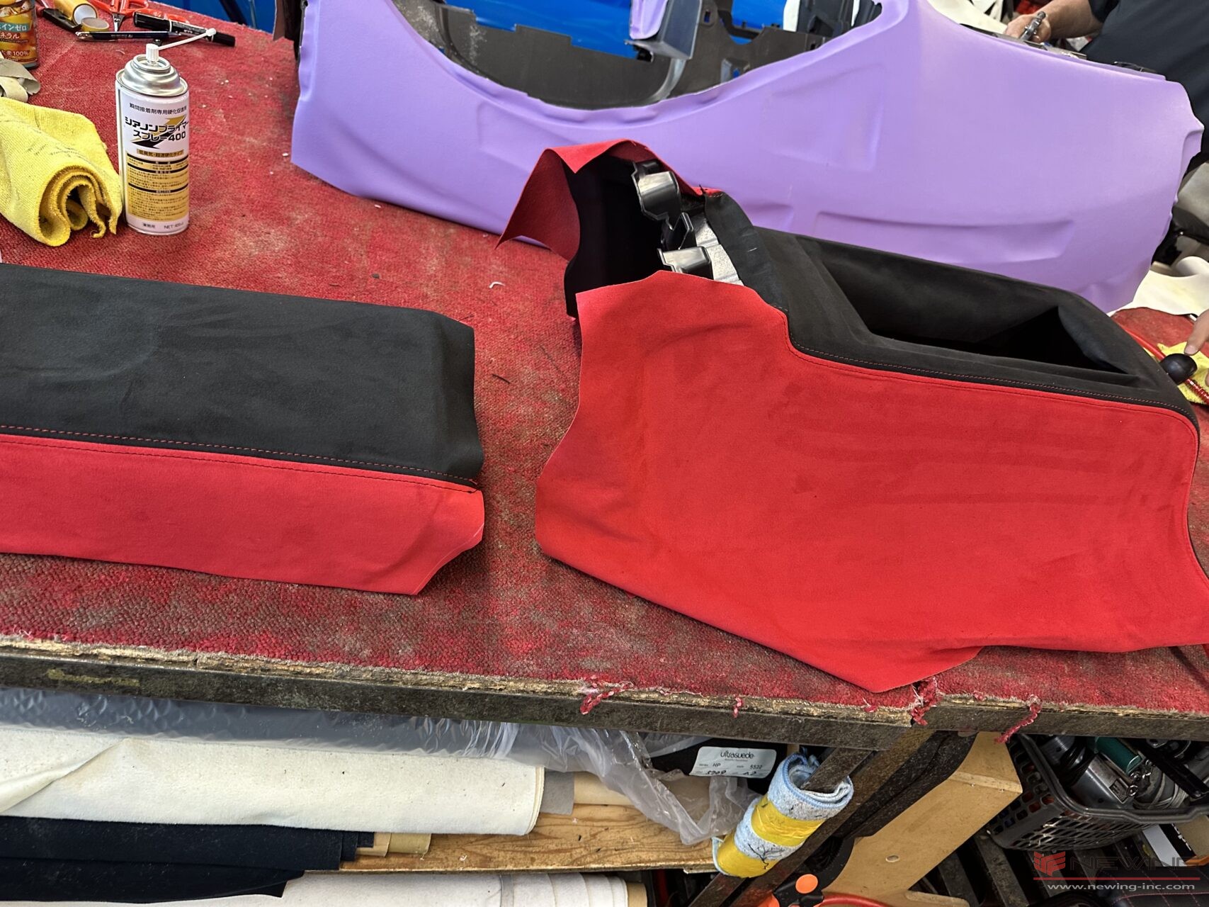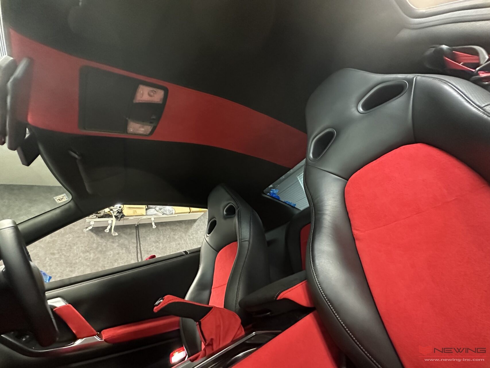 PART1はダッシュ&天井編を黒と赤のウルトラスエードで張り替え(^^)/