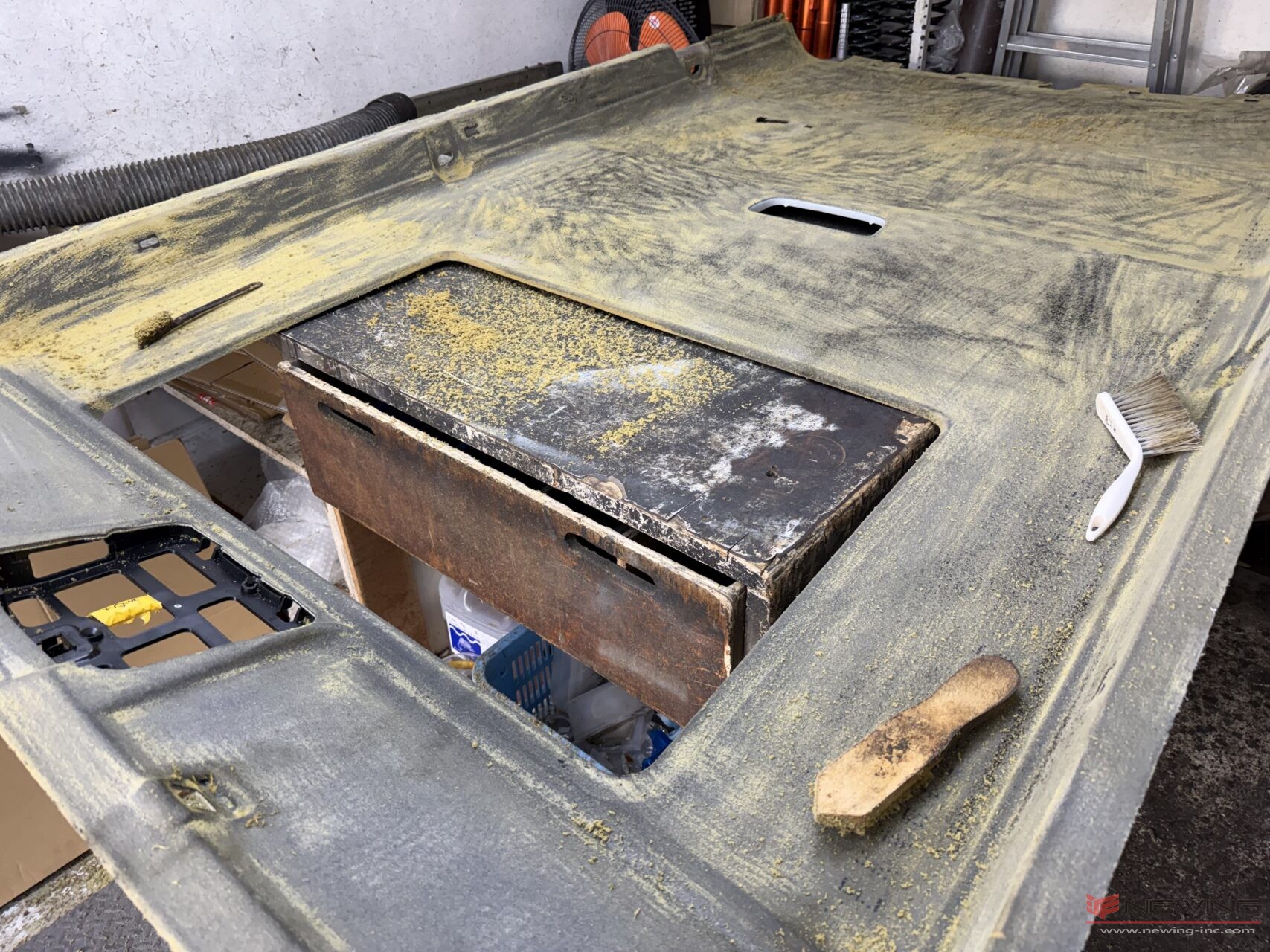 天井本体に残ったウレタンは綺麗に削っていきます。
