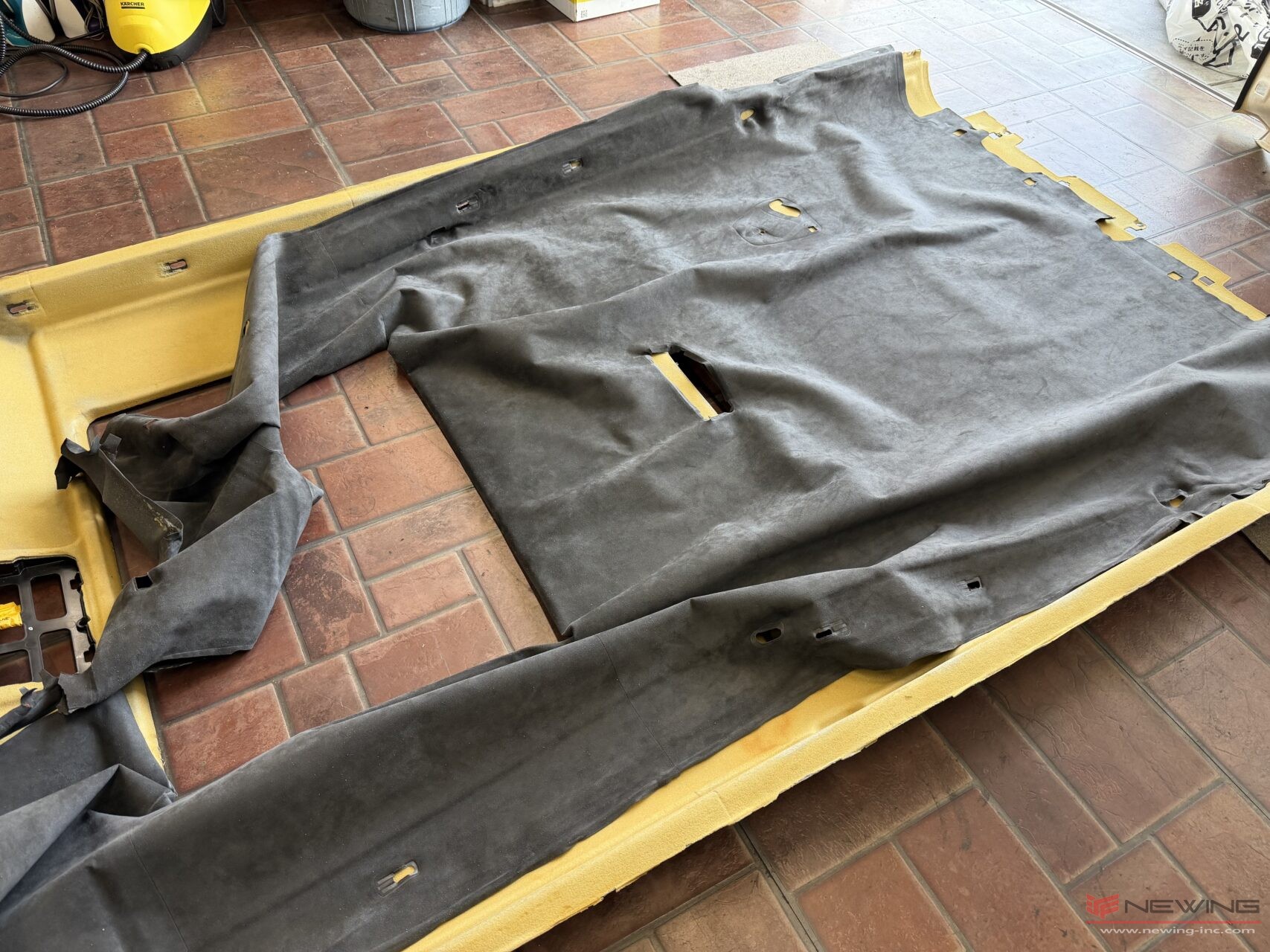今回は純正スエードの天井が浮いてきてしまっています。