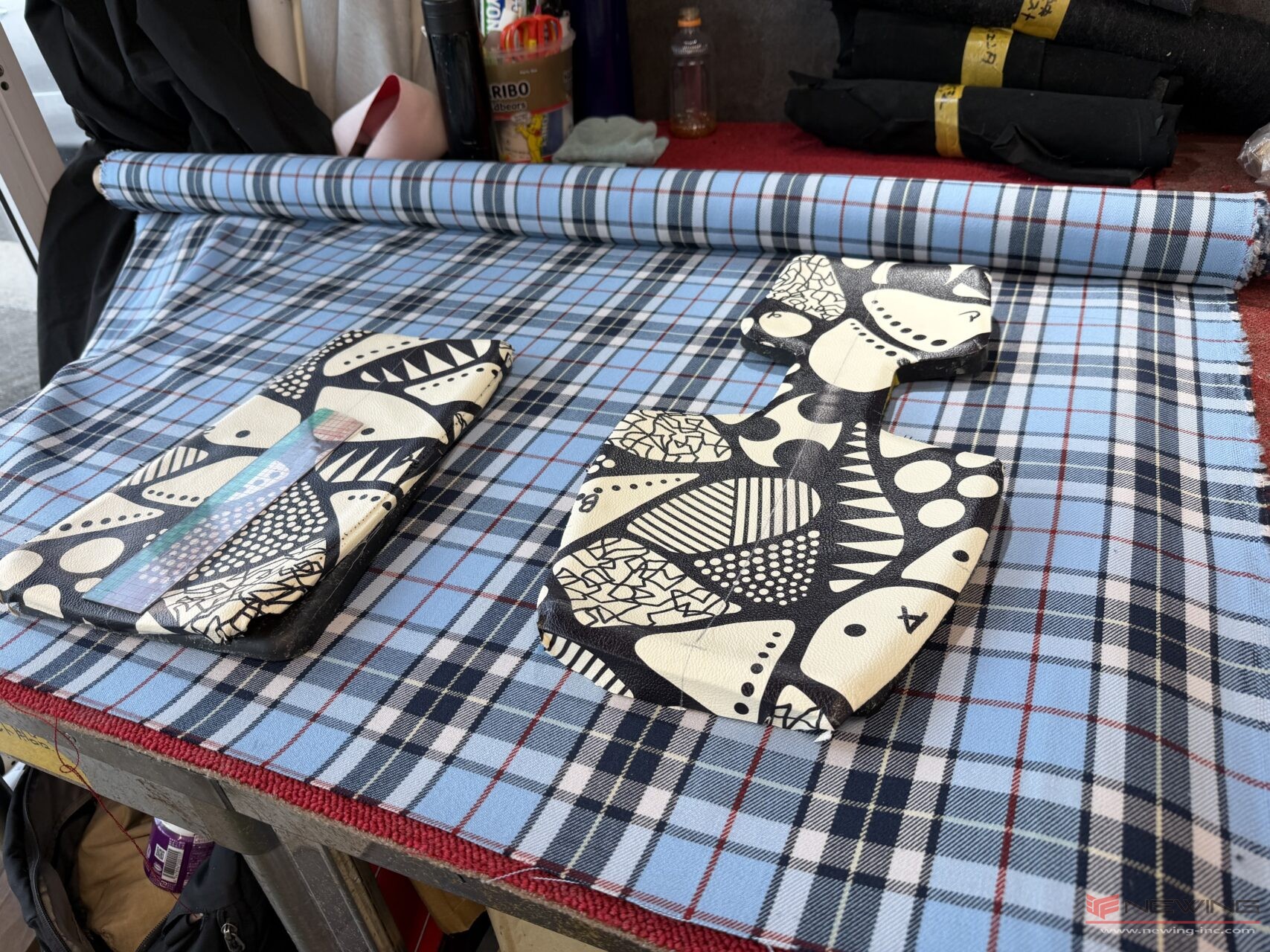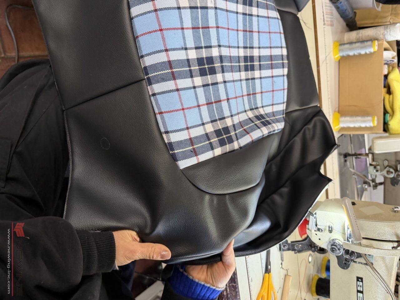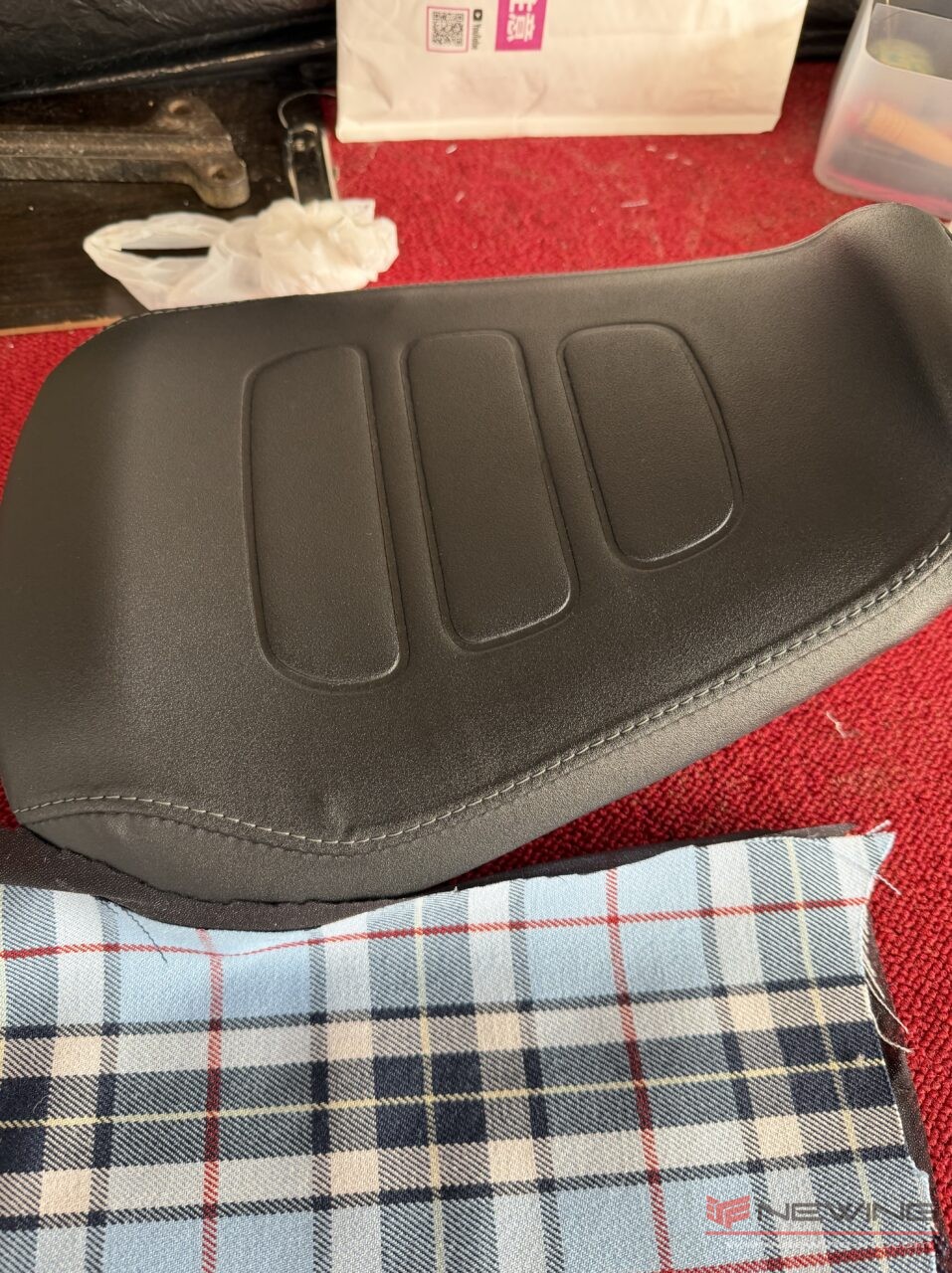 MadBug仕様ザ・ビートルに合わせてOZbyNEWINGオリジナルハーレーバイクシートカバーもチェック生地で張り替えていきます(^^)/