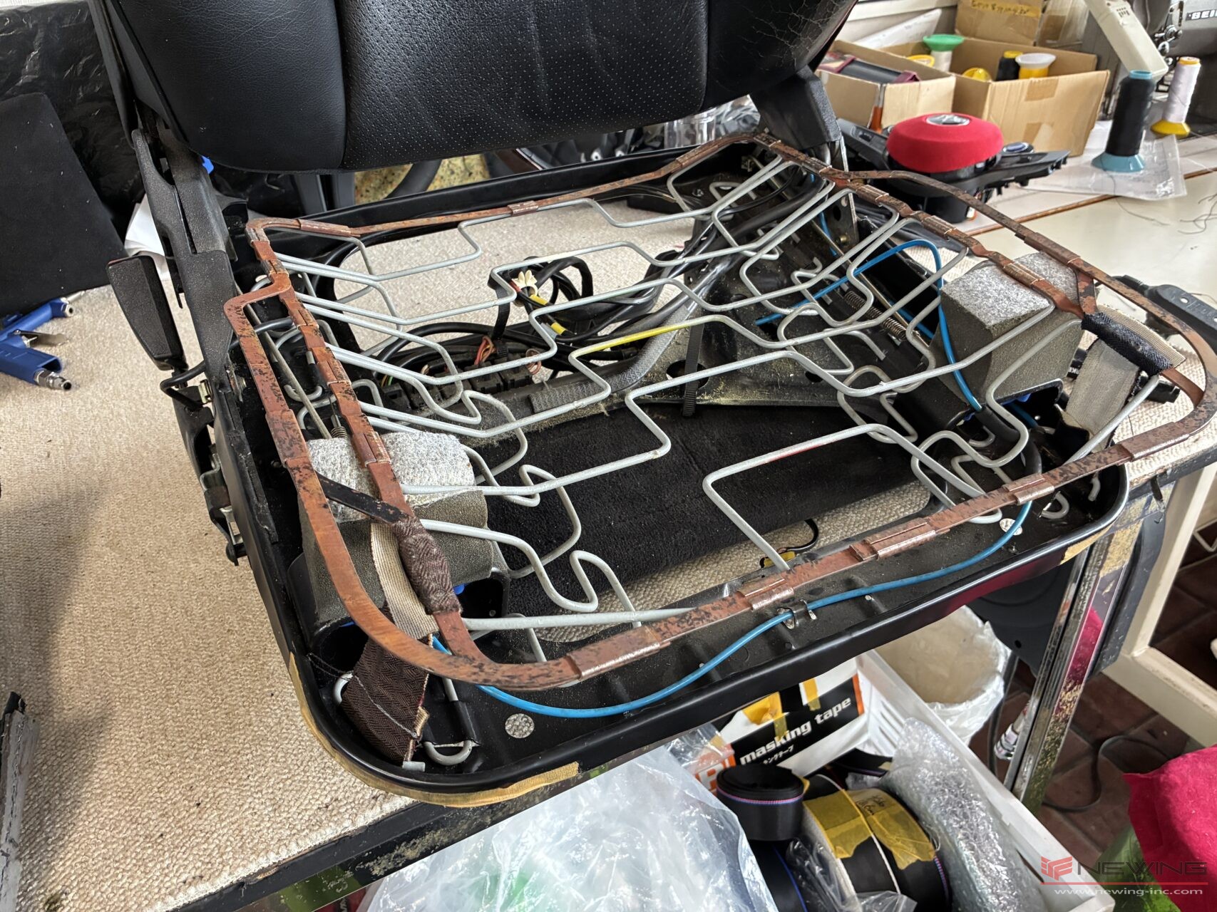 ドアを開けると、傷んだシートが真っ先に目に入ってきました。もちろん、NEWINGでしっかり蘇らせます。