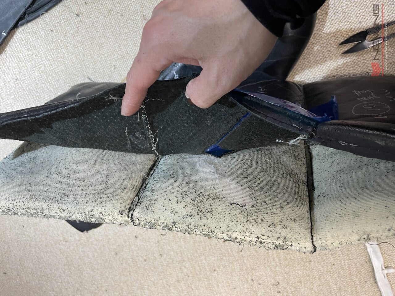 表皮についているウレタンは薄くなってしまっている為、新しい物を入れてふっくら感が出るようにしていきます!(^^)!