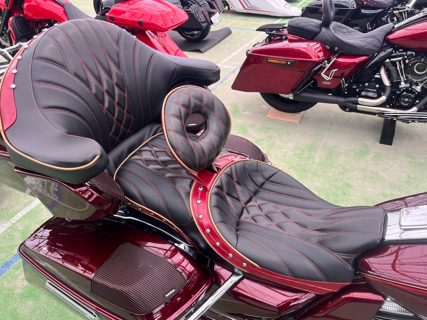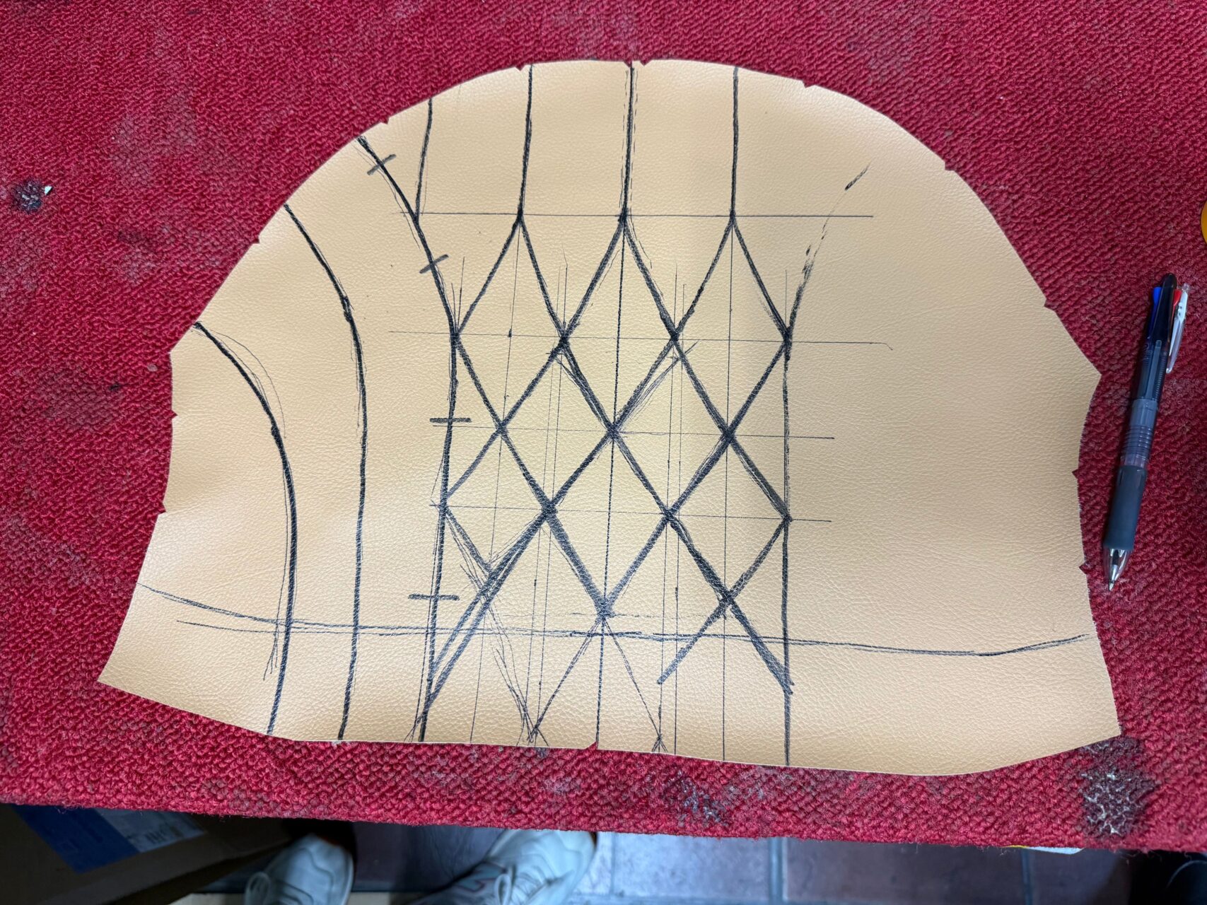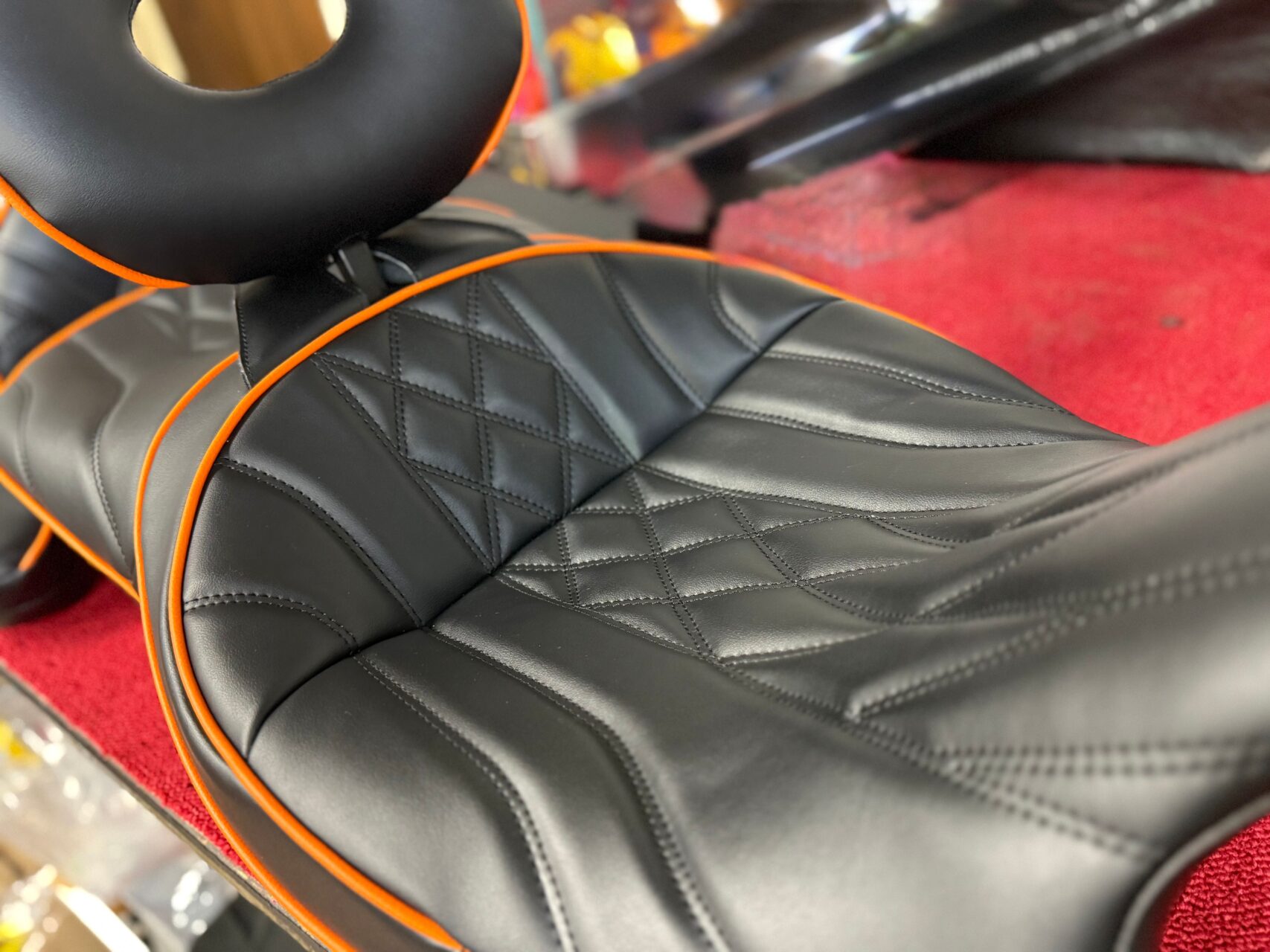ステッチの繋がりや、ひし形のデザインの大きさなども調整して、装着時に別のパーツと違和感が無い様に仕上げて行きます(^^)/