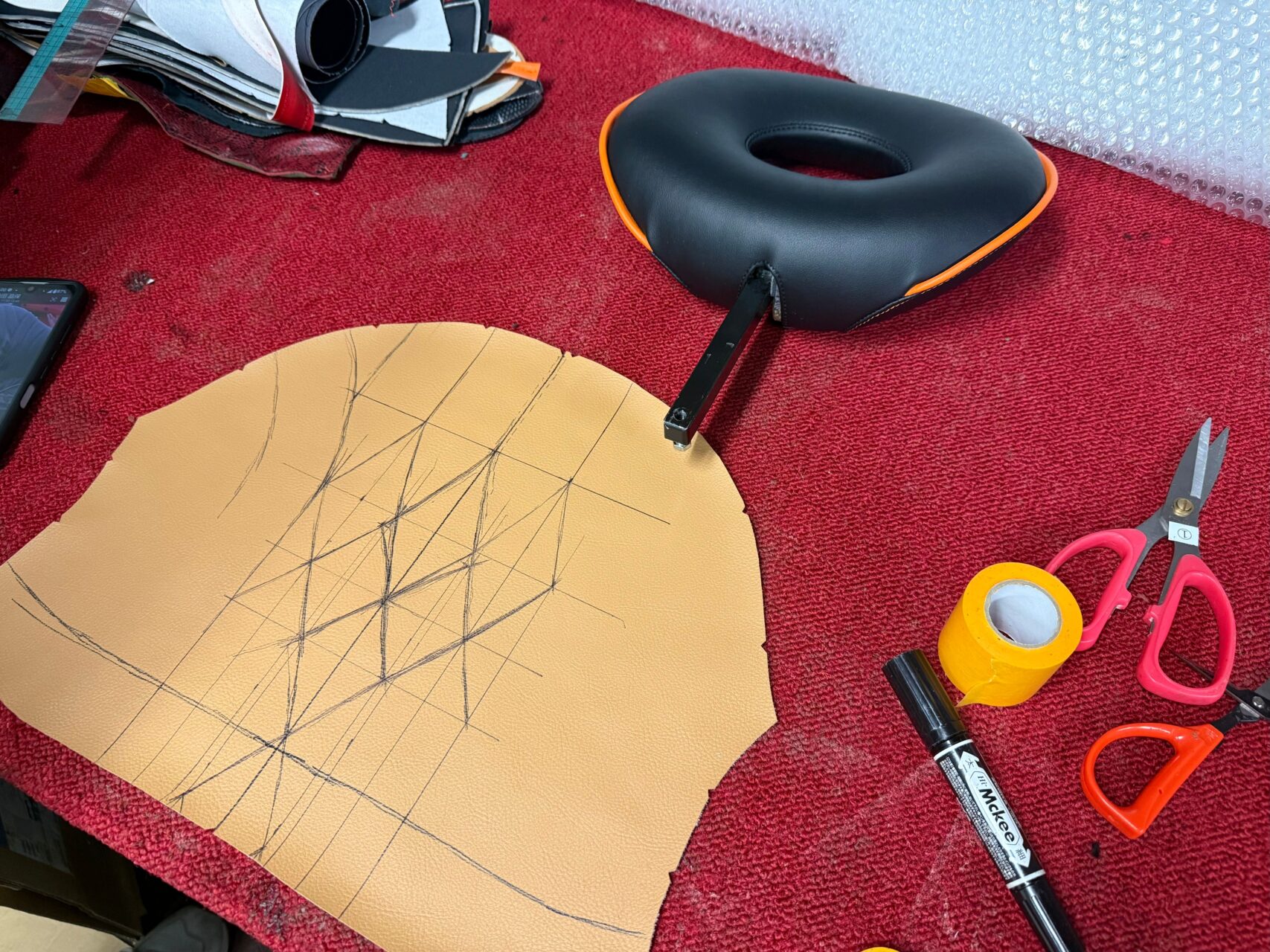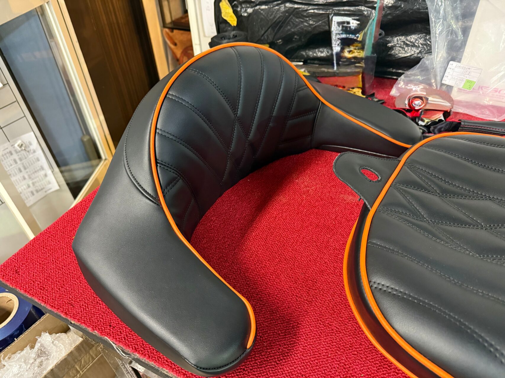 ご存じのようにシートって三次局面で出来ている物なので、ステッチの繋がりが難しく、どのような角度で繋がって行くかを頭の中で計算してデザインして行かなければ成りません、これはもう匠の世界に成りますね(*´▽`*)