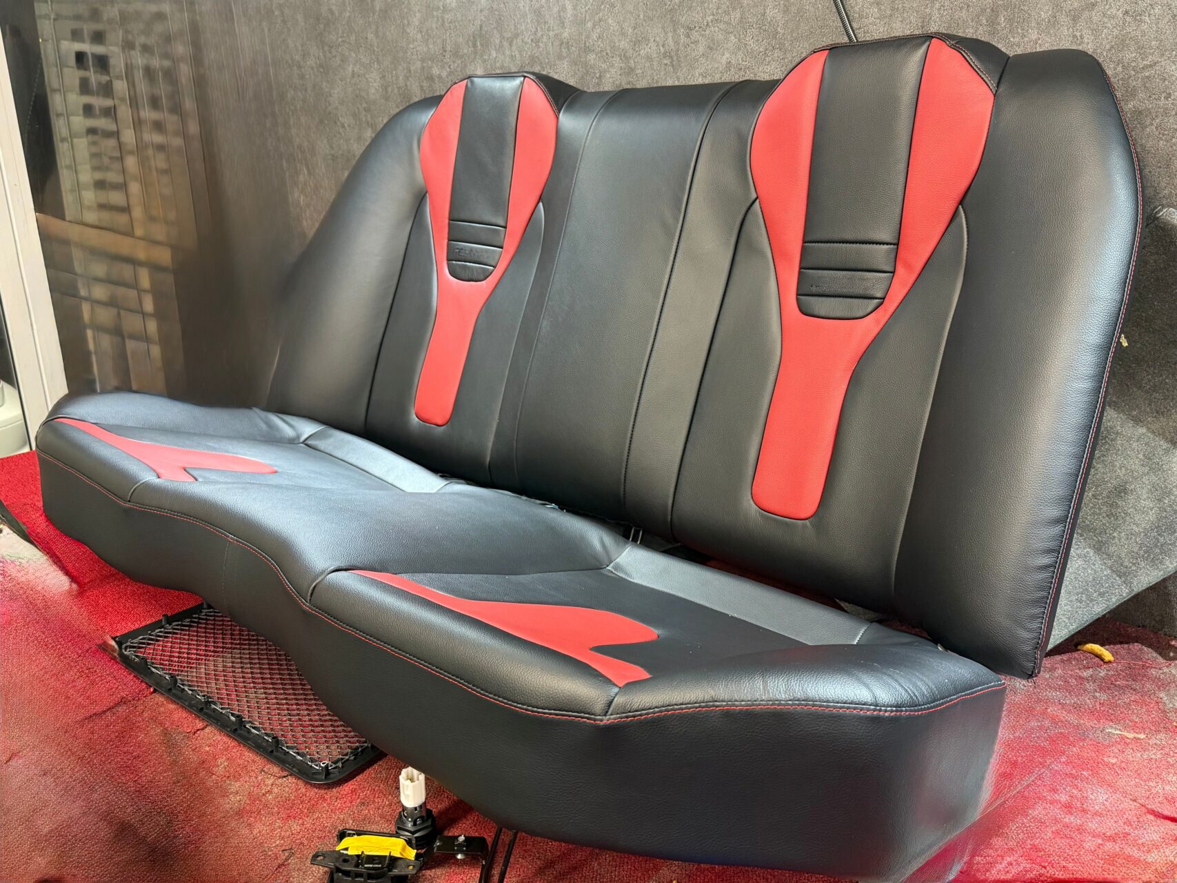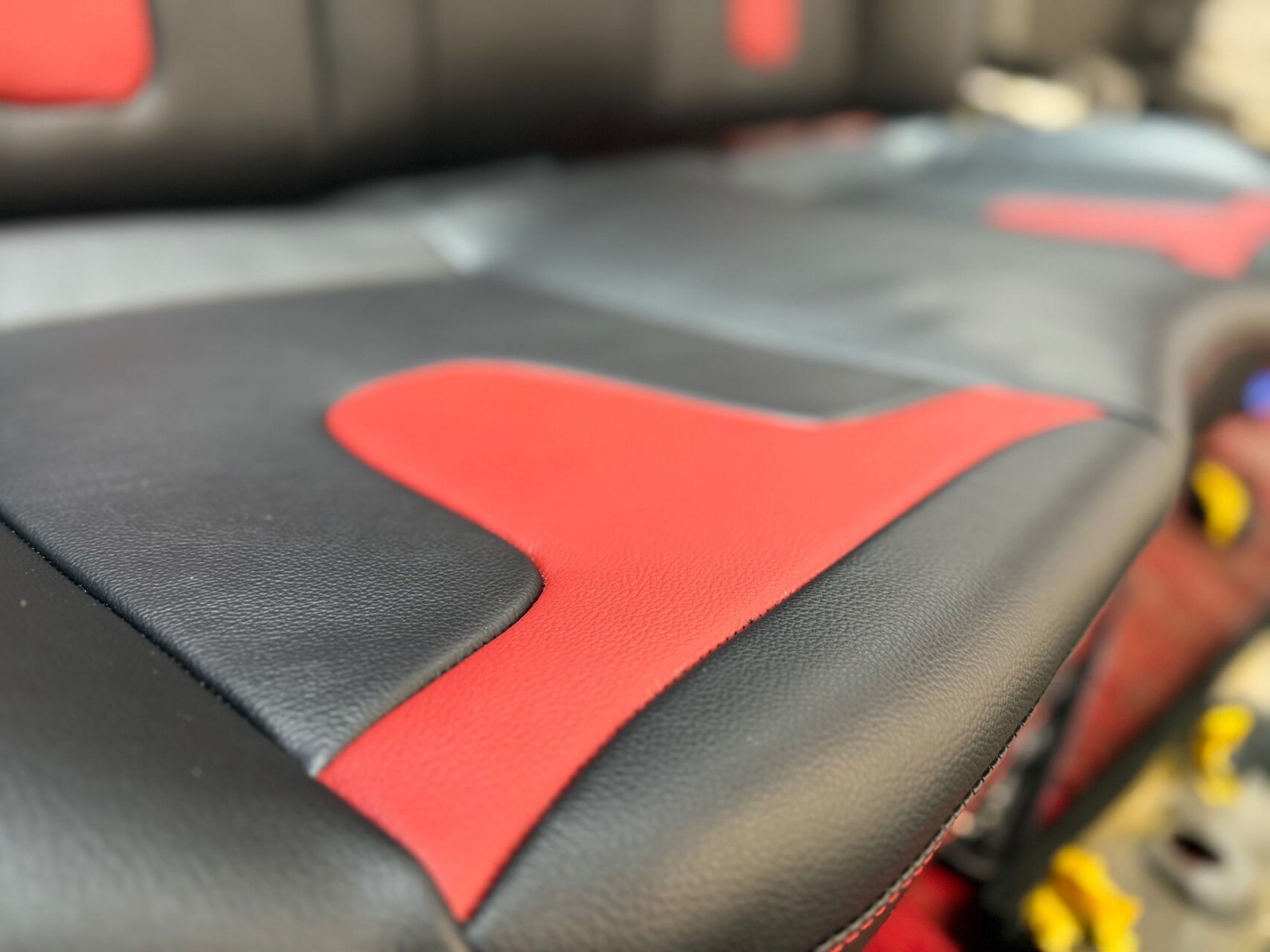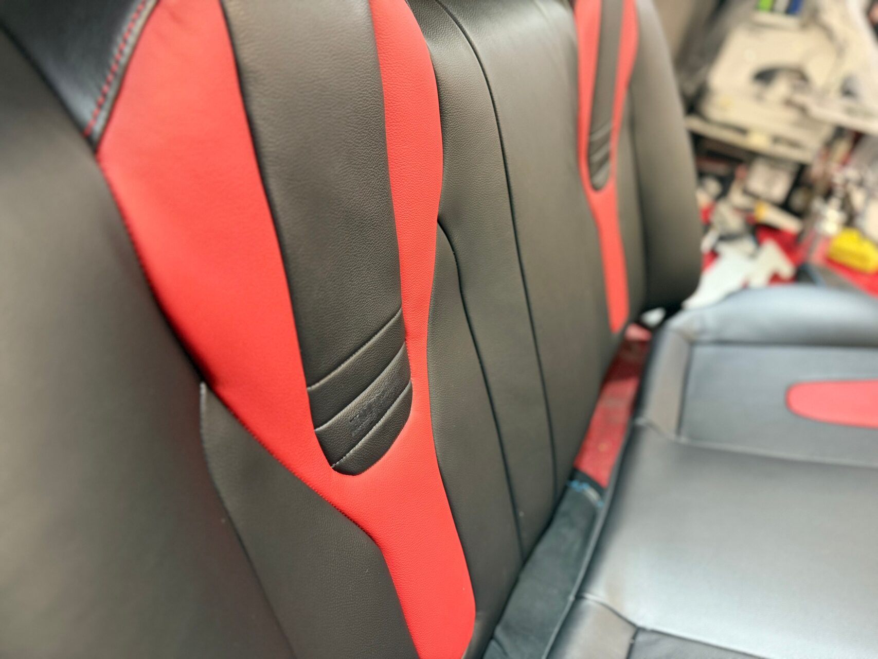 カラーシートベルト巻き替えでご来店された、インプレッサのお客様はフロントシートのRECAROのデザインに合わせて、リアシートの張替ミッション依頼(#^^#)