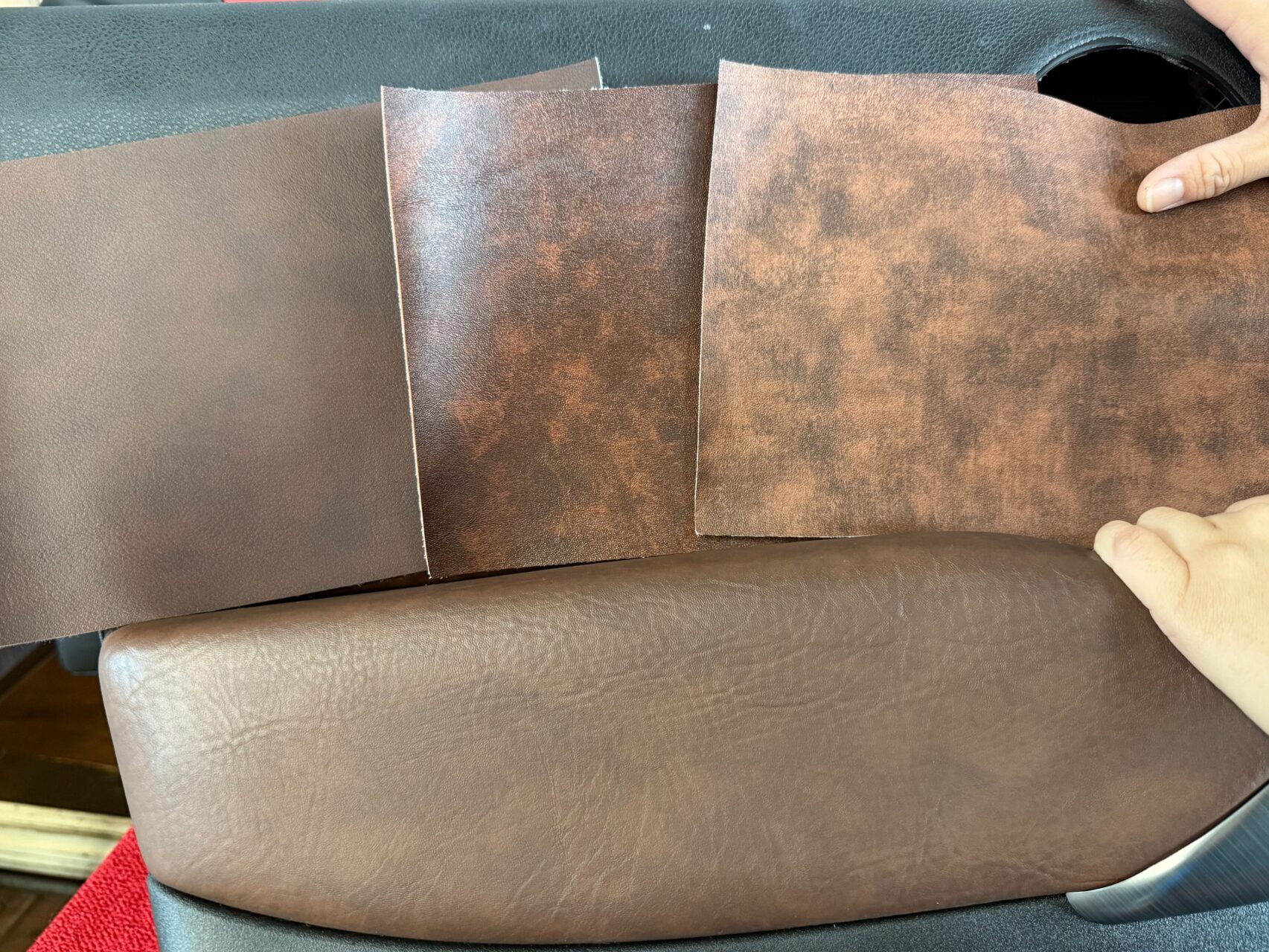 新たなミッションも次々とご依頼が、FIATのドアパネル・アームレストを純正生地に近いもので張替のご依頼、数枚のサンプル生地から一番近い物を選び、ミッションスタート(*^^*)