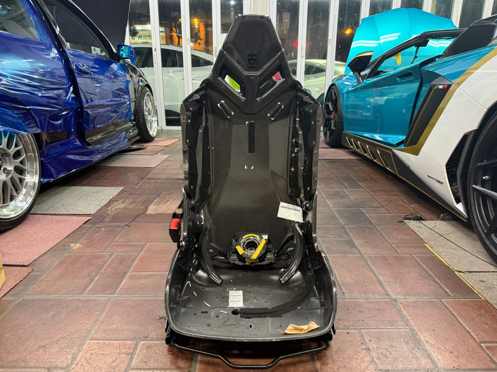 NEWINGカスタムインテリアでミッション真っ只中のアベンタドール、勿論カーボンファイバー製モノコックが採用されている事は、ご存じの方も多いとは思いますが、中々マジマジと見る事が無いと思いますので、これを機会に一通りお見せしましょう(*^^)v