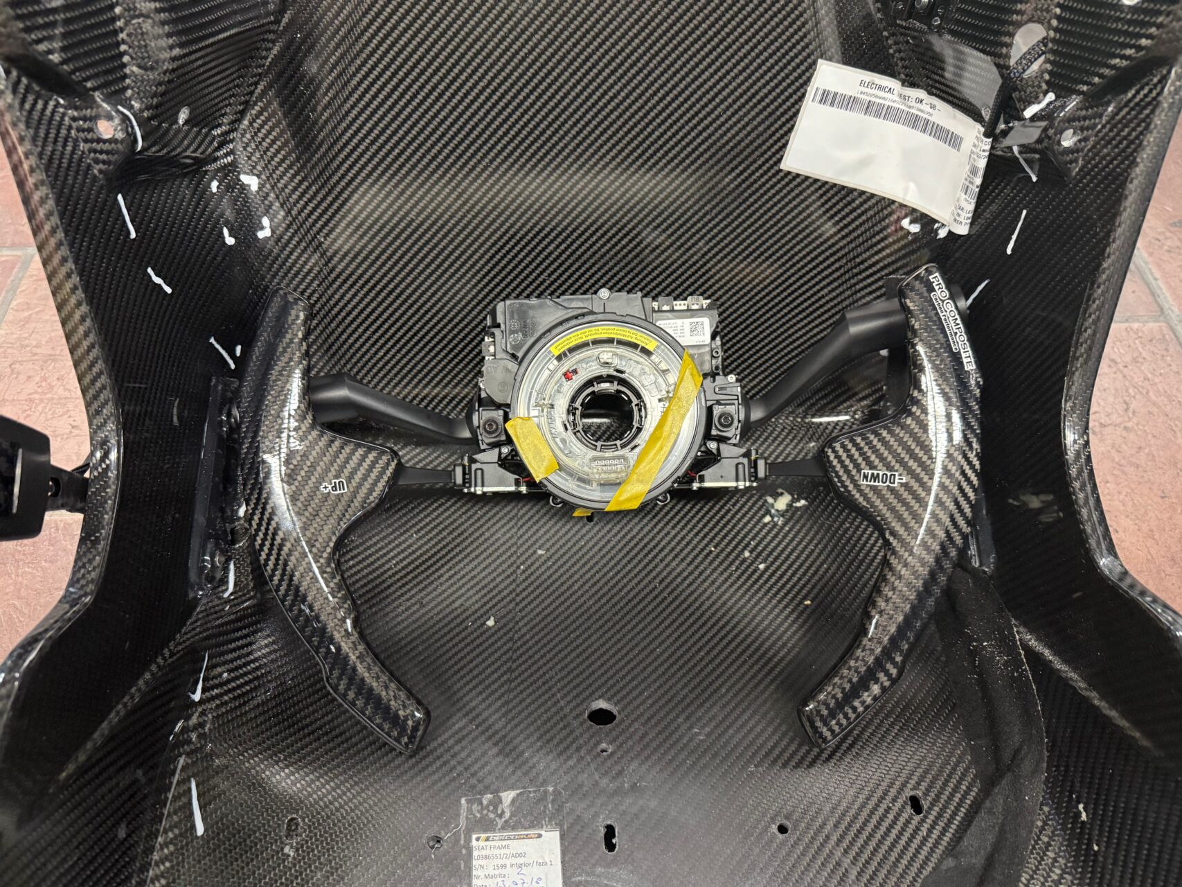 先ずは、装着されているバケットシートのシェル部分も全てドライカーボン製、軽量な上安全性に優れてドライバーを守ってくれます(^^♪