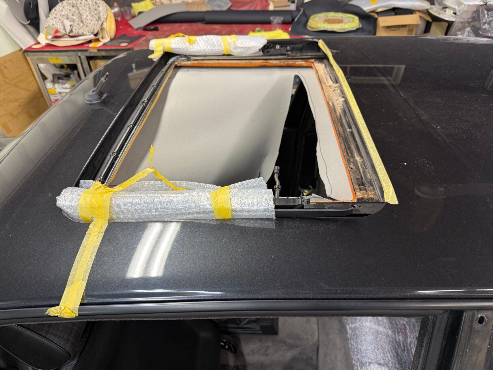 そんな、NEWINGカスタムインテリアに新たなミッション、BMW E30 M3天井修理のご依頼が来ました(^^♪