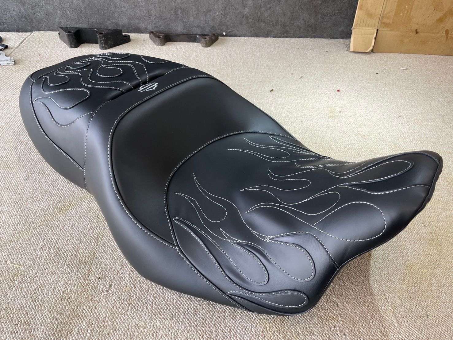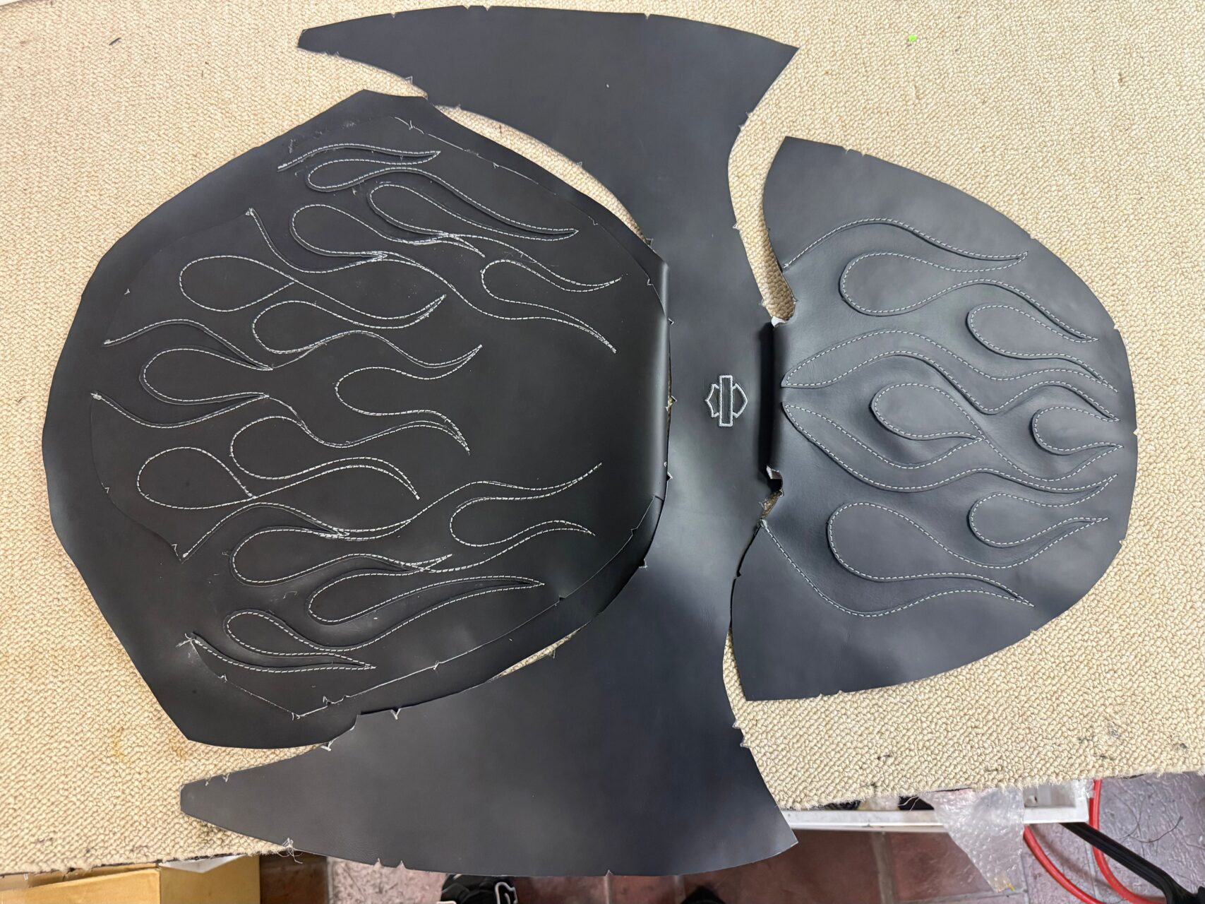 今回のミッションはHarleyーDavidson特有のファイアーパターンを取り入れたシート張替(^^♪