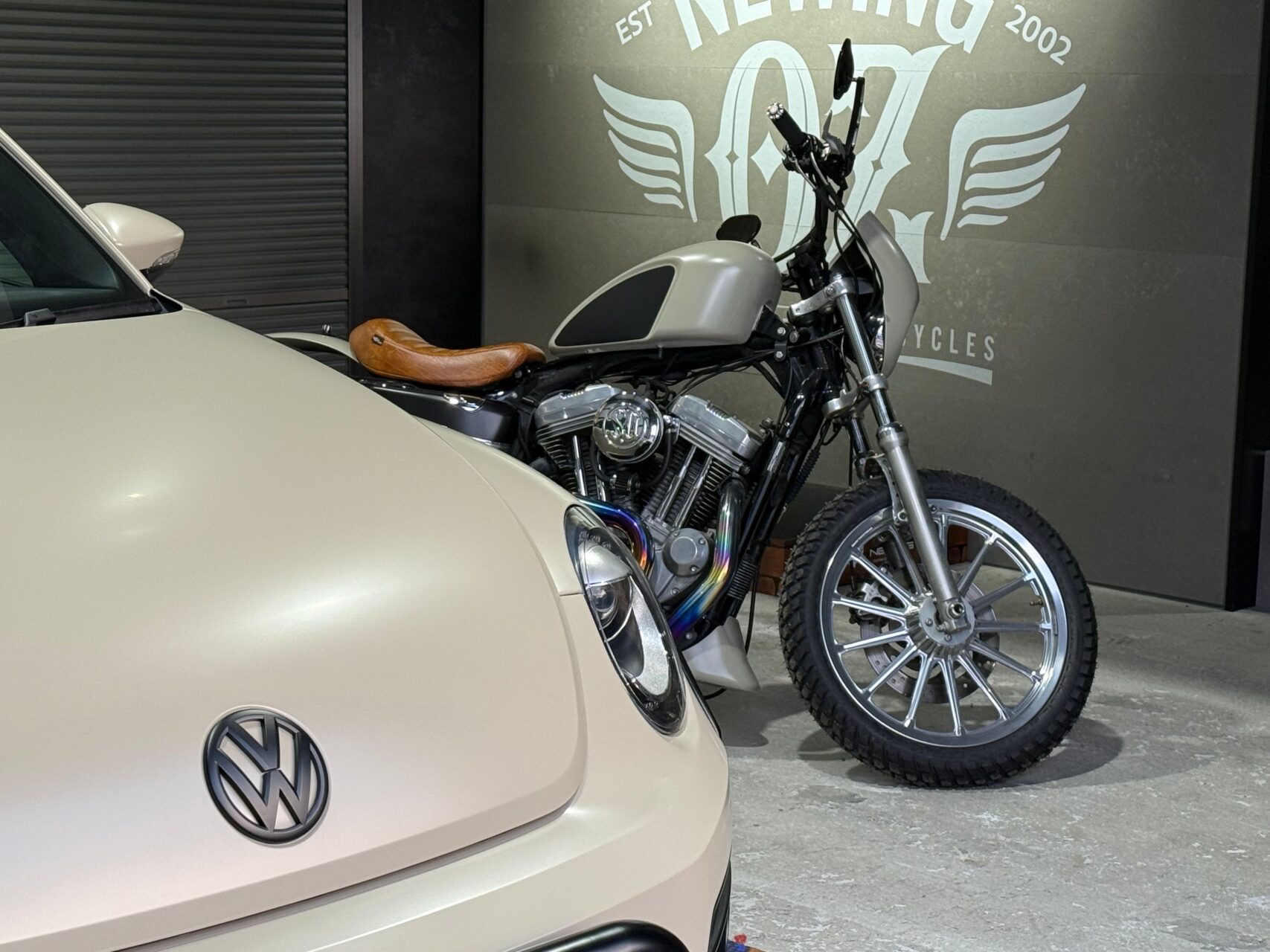 そして、その世界観に寄り添うHarleyーDavidson、武骨さの中にカスタムの色気を加え、MadBugと並べた時に”絵に成る”組み合わせを意識しました(*´▽`*)