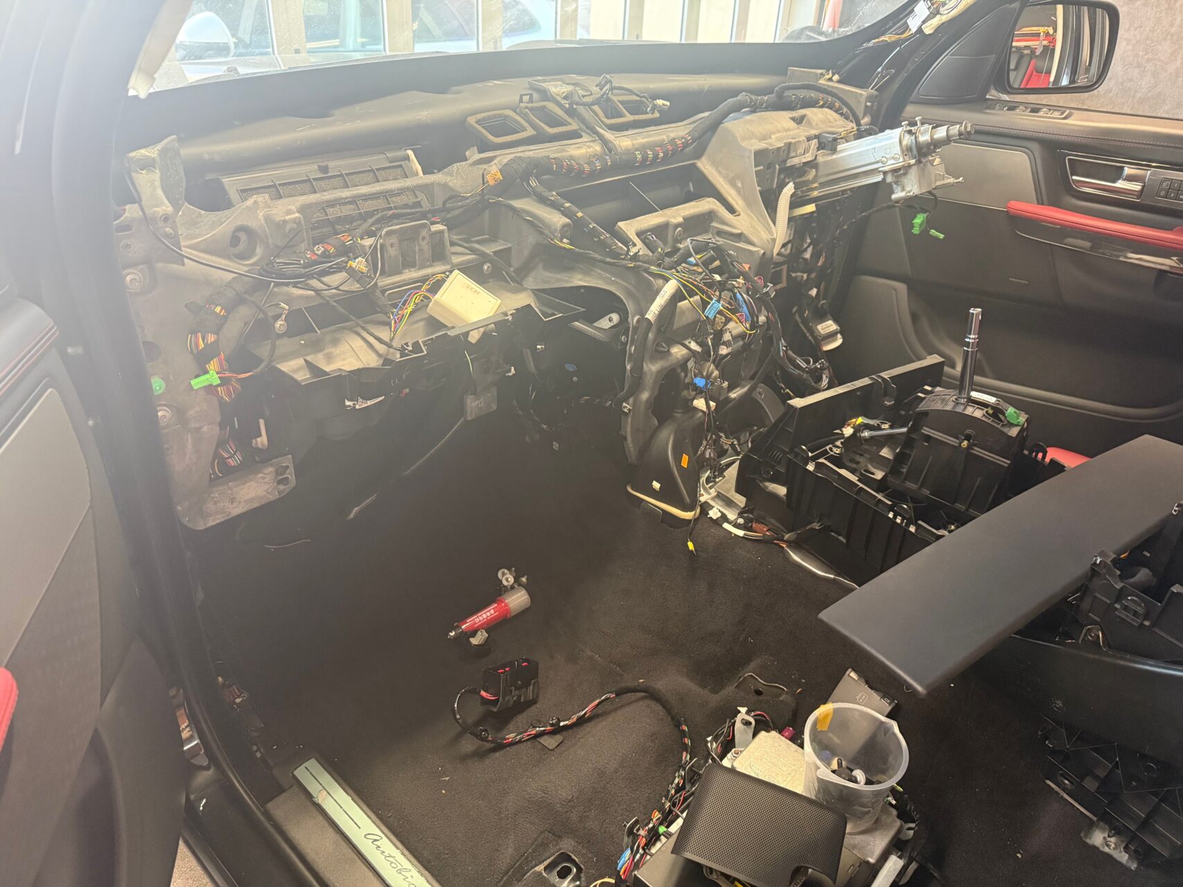 まずはいつも通り、迷いなくインテリアを分解、ダッシュボード・センターコンソール・内装パーツを一つ一つ外し、車内はご覧の通り(^^♪