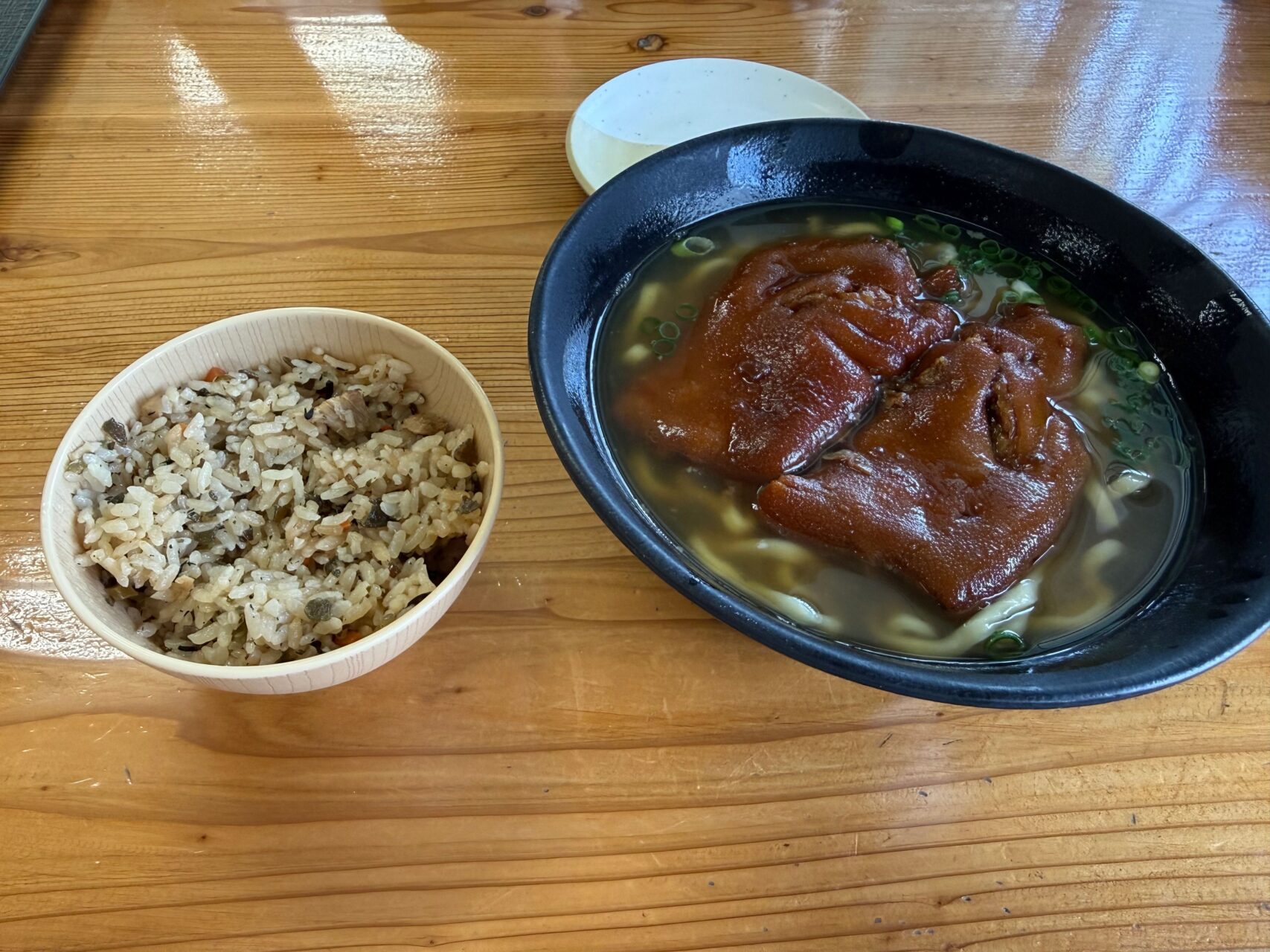 気を取り直して、名物”てびちそば”をくって腹ごしらえ(^_-)-☆ワァオ!