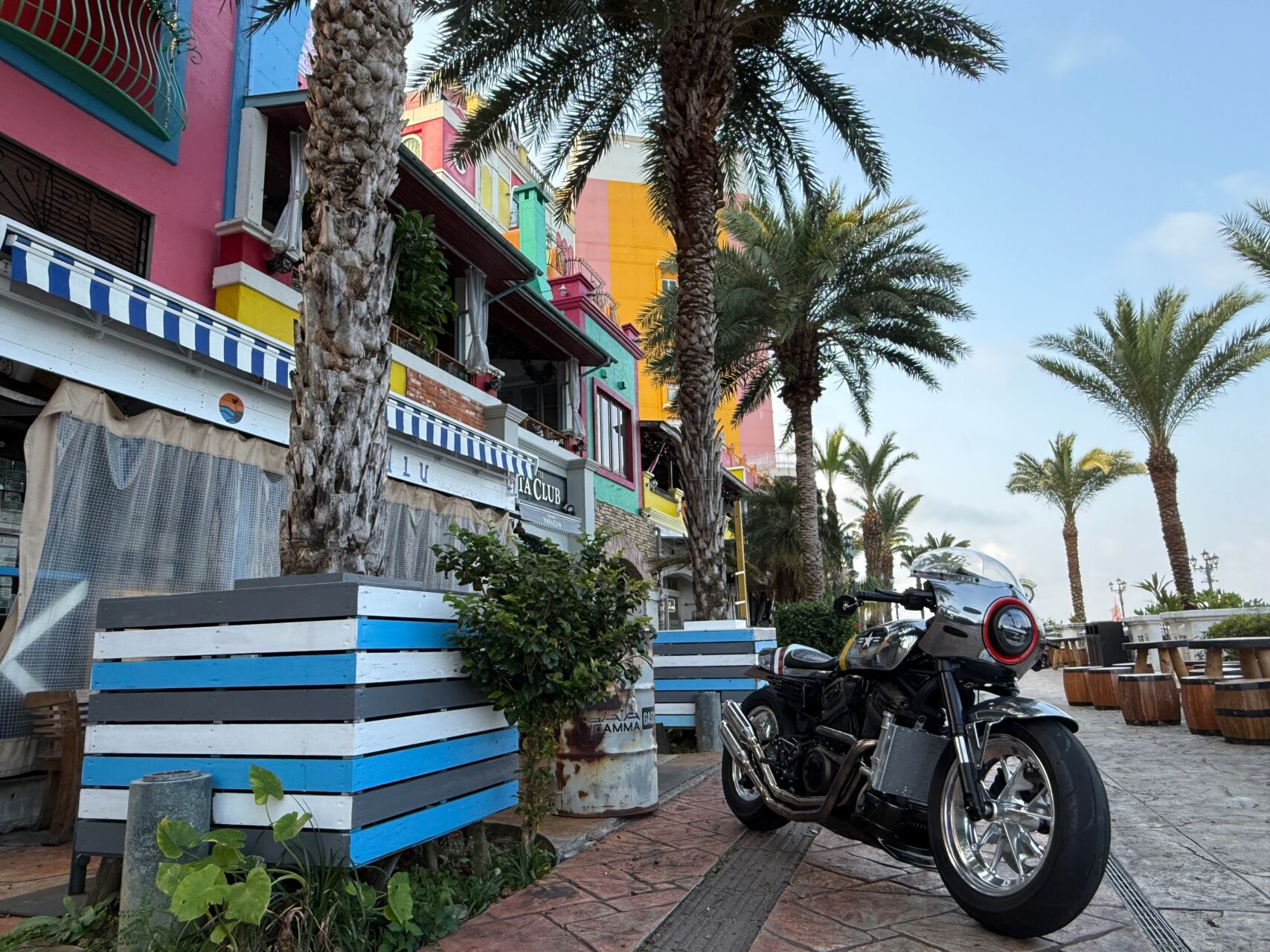 色鮮やかな街並みに映える「MadBug」「OZオリジナルハーレー」(#^^#)