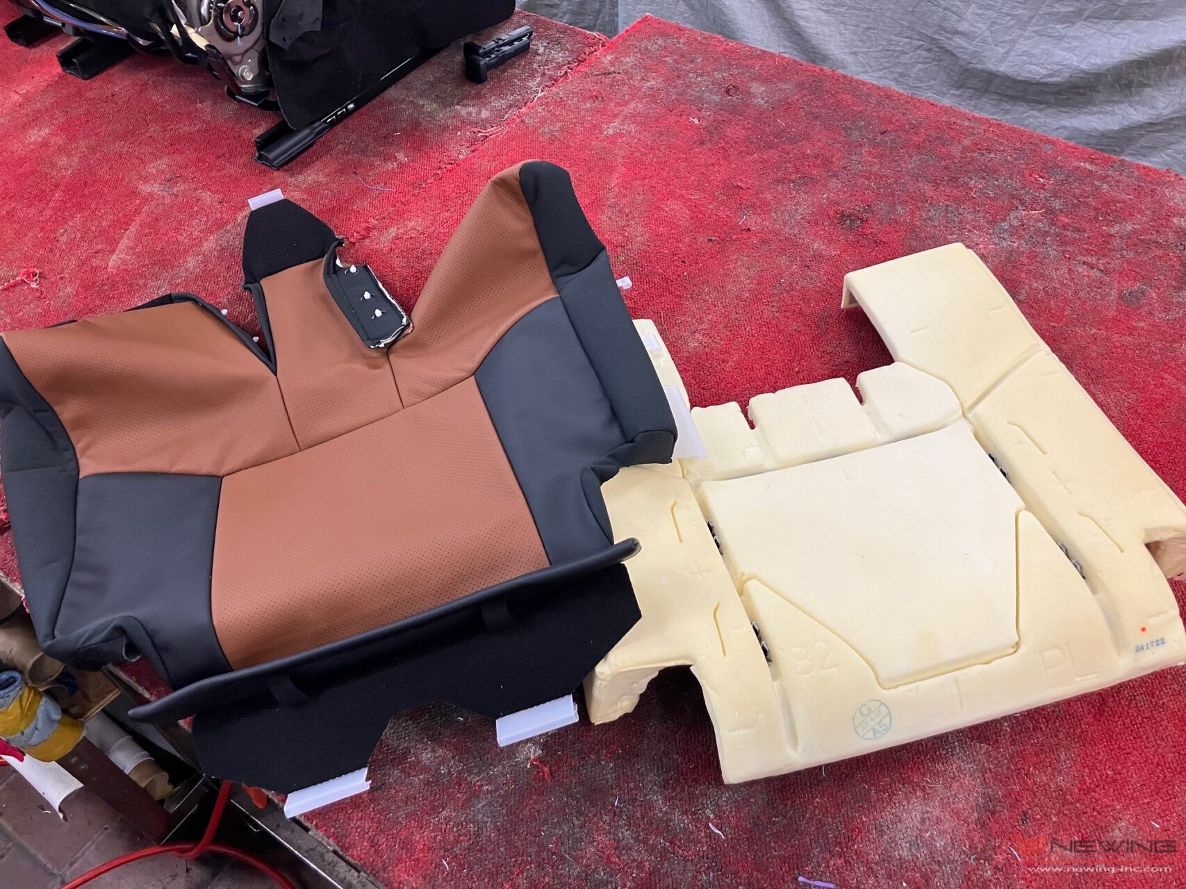 職人たちが作り上げた表皮を純正ウレタンに取り付け、車両に組付けていきます