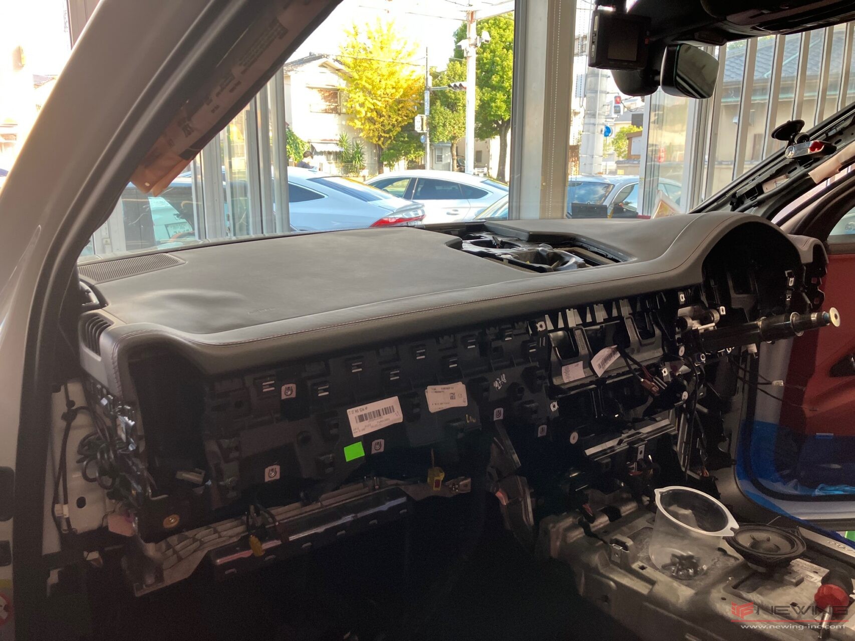 車両からダッシュボードを取り外し、張替え職人にバトンタッチ!