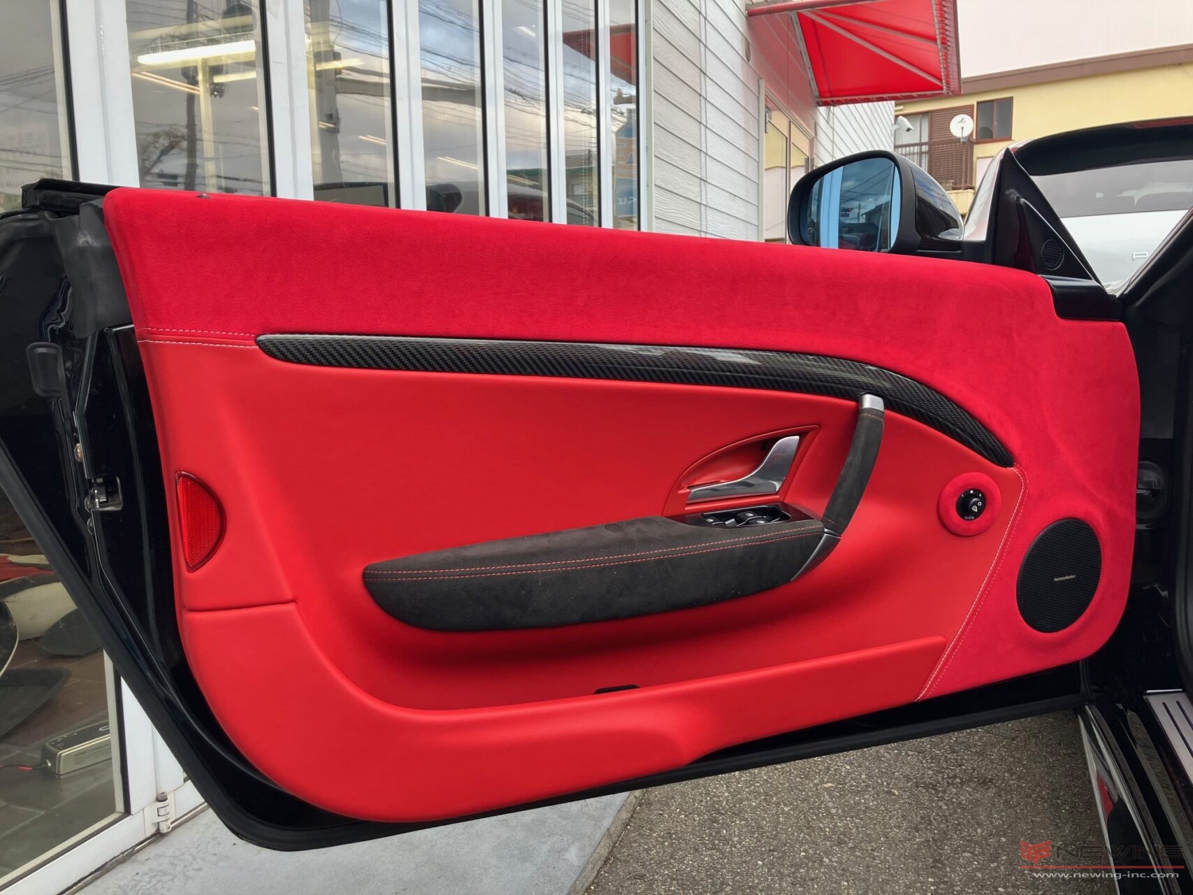 純正のカーボンパネルとブラックのアルカンターラを活かして