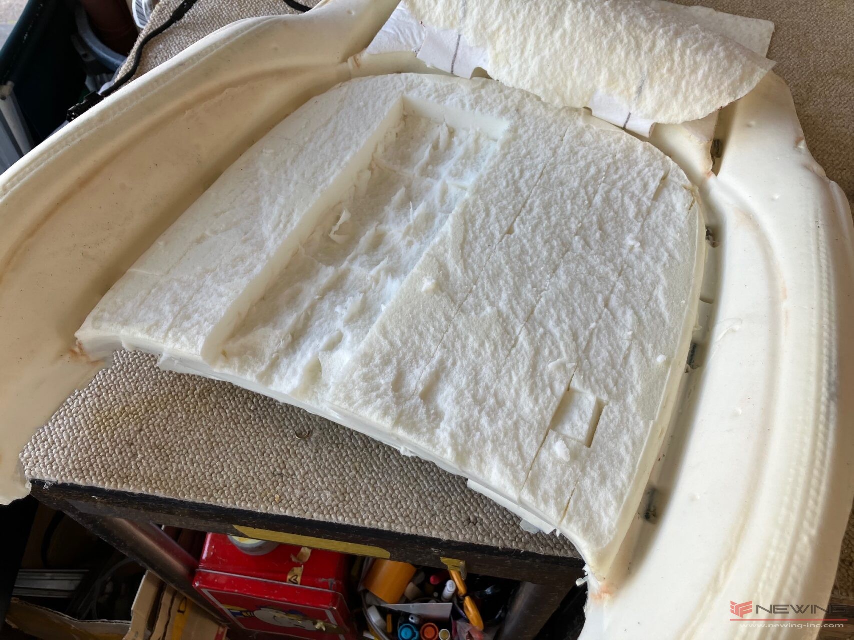 切り刻んで、エアクッションの厚みが入る分純正ウレタンを削っていきます
