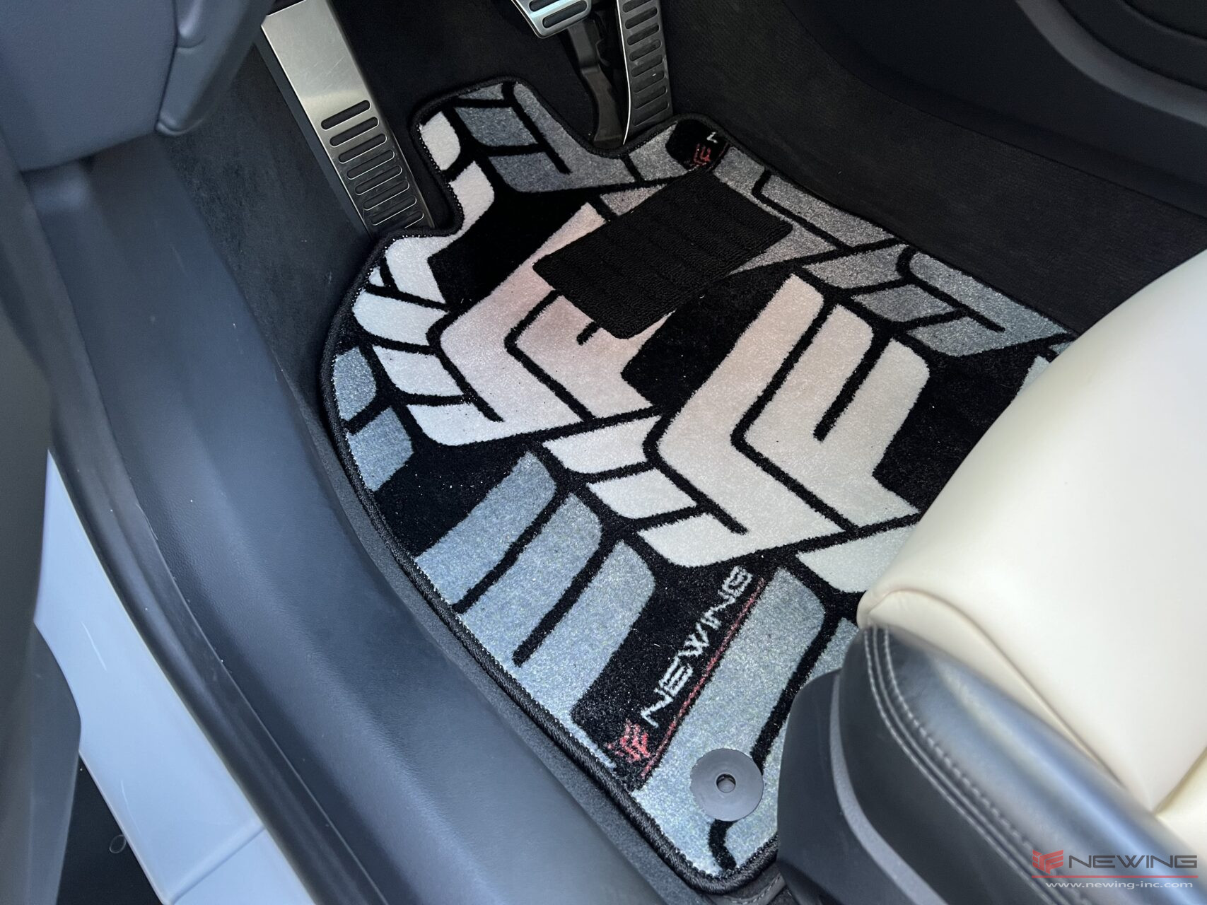 シートセンターはセンター部分をWhiteNappaLeather×Black Ultrasuedeの組み合わせに